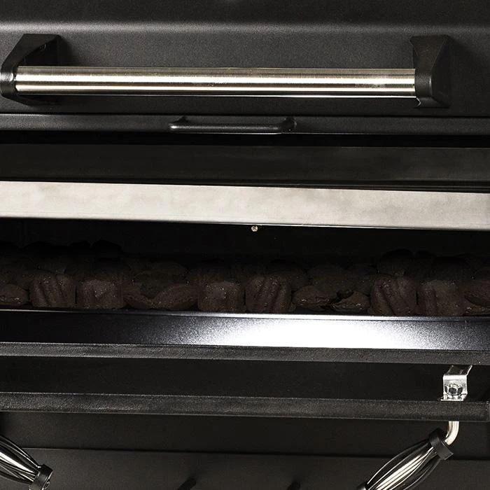 - Adjustable, easy-lift charcoal grate level-raises/lowers charcoal grate for temperature control
