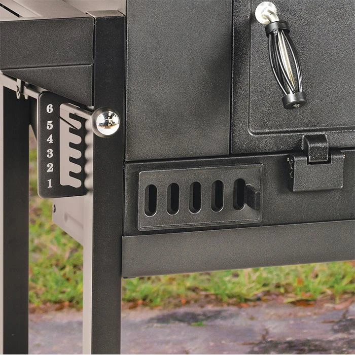 - Two adjustable vents and smoke stack for additional temperature control